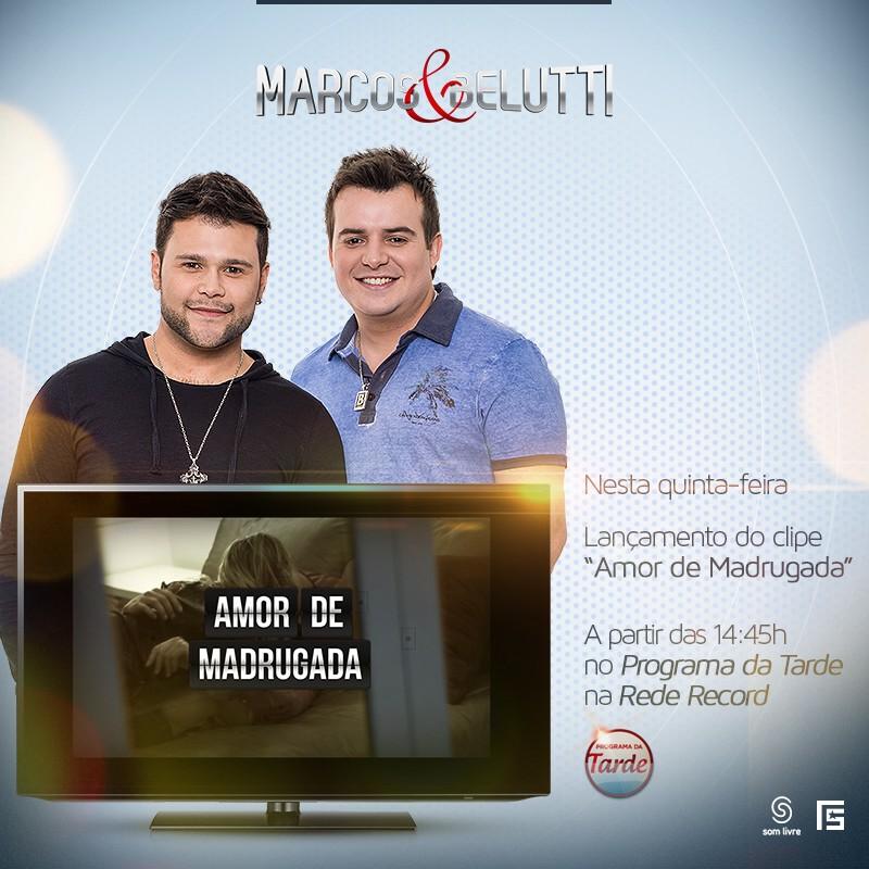 Quem não gosta de ouvir um “eu te amo”? Marcos e Belutti captaram o poder destas três palavras e estouraram no cenário nacional com a canção I Love You. Mas não pararam por aí. Nesta quinta-feira (17), a dupla deu mais um passo na carreira. Durante o Programa da Tarde, os sertanejos lançaram o clipe Amor de Madrugada.